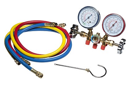 Шланги используются для подключения манометрической станции к холодильному агрегату и заправочному баллону с хладагентом, либо к холодильному агрегату и вакуумному насосу. Вентиль на коллекторе перекрывает проход хладагента между шлангами разного цвета. Манометр показывает давление хладагента в атмосферах, по цветам манометры делятся на синие и красные. Синие предназначены для измерения давления на стороне всасывания, красные предназначены для измерения давления на стороне нагнетания.
