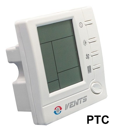 В корпус пульта, изготовленного из пластика, встроен температурный датчик. На лицевой панели пульта расположены цифровой LCD дисплей с подсветкой и кнопки управления. Дисплей показывает текущую и установленную температуру воздуха в помещении, выбранный режим - охлаждение, нагрев или автоматический, установленную скорость вентилятора. Скорость вентилятора можно установить вручную, с помощью кнопок управления. Имеется возможность управлять 3-мя скоростями (быстро/средне/медленно) автоматически, в зависимости от температуры воздуха в помещении.