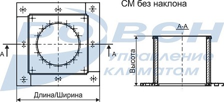 Компоновка стакана монтажного 02 - с обратным клапаном на вытяжку, предназначена для установки крышного вентилятора на кровле без уклона.