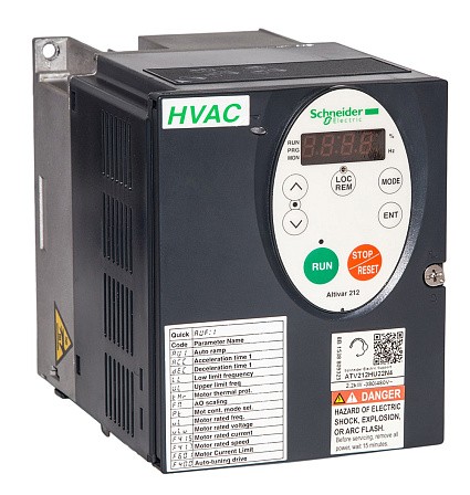 Преобразователь частоты Altivar 212 предназначен для плавного регулирования скорости вращения трехфазных асинхронных двигателей вентиляторов напряжением питания от 380 до 480 В мощностью от 0,75 до 75 кВт.